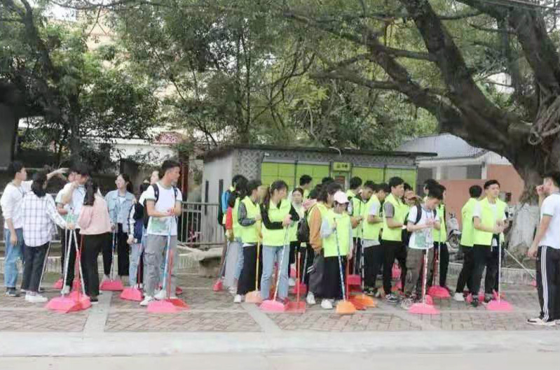图 志愿者们进行集合分组 本次活动在志愿者们有序的分工下拉开了序幕。参与本次打扫活动的志愿者们在负责人的协调下分为了5个不同的任务小组,分别负责社区各个道路垃圾的清理,公园草坪上的落叶以及杂草的清除。志愿者们都以极大的热情投入到本次活动中,利用不同的卫生工具认真的打扫每个区域。