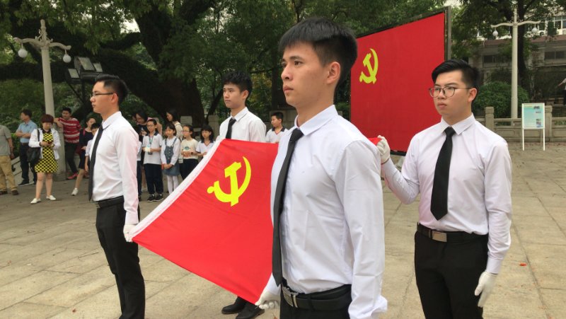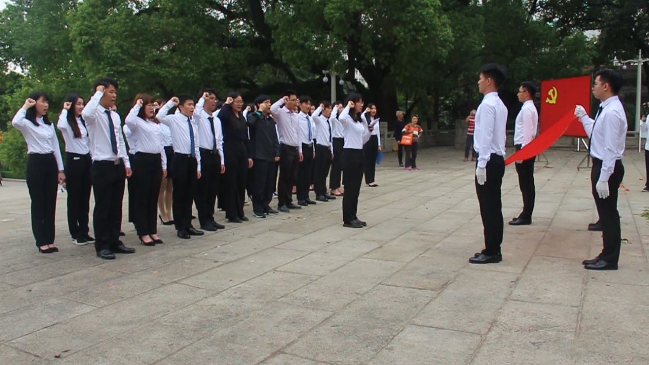 随后是本次活动的最后一项议程——宣誓。全体党员在领誓人黎燕芬同志的带领下,面对党旗重温入党誓词。在鲜红的党旗下,举起右手、握紧拳头,庄严宣誓。让党员们重温了入党宣誓时的庄严承诺和坚定决心,在党旗下接受心灵的净化和洗礼,牢记共产党员的政治责任和历史使命,不断保持共产党员的先进性,以实际行动为党旗增光添彩。宣誓结束,此次缅怀先烈活动也落下帷幕。