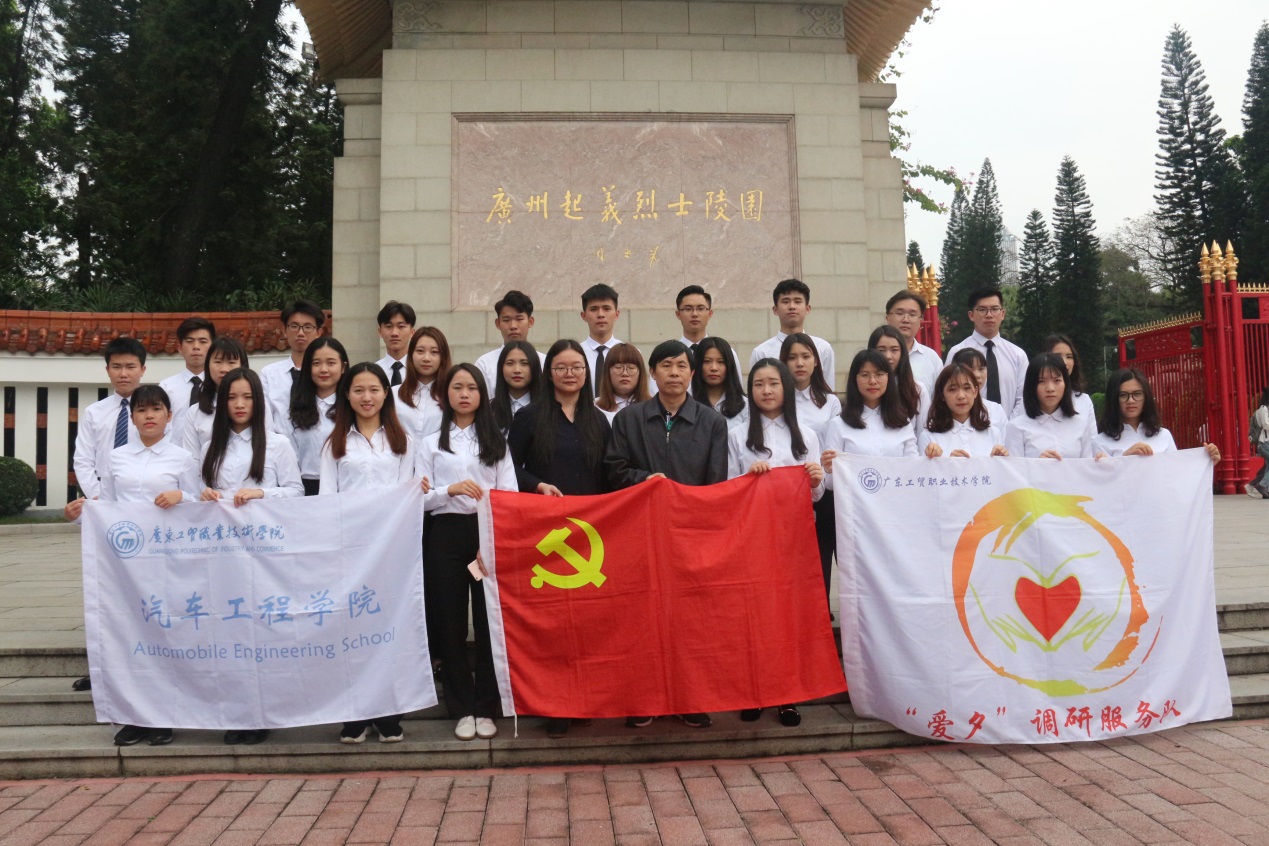 为贯彻落实学习习近平新时代中国特色社会主义思想和党的十九大精神,献礼中华人民共和国成立七十周年、五四运动一百周年,悼念革命烈士,缅怀先烈的丰功伟绩,教育师生继承革命先烈的光荣传统,弘扬民族精神,继承先烈遗志。2019年3月31日,在汽车工程学院党总支的组织下,汽车工程学院学生党支部全体在校党员,部分入党积极分子在党总支书记彭卫东和学生党支部书记刘彩云、纪检委员蔡少德的带领下前往广州起义烈士陵园开展“缅怀革命先烈,传承红色精神”为题的缅怀先烈爱国主义教育主题活动。
