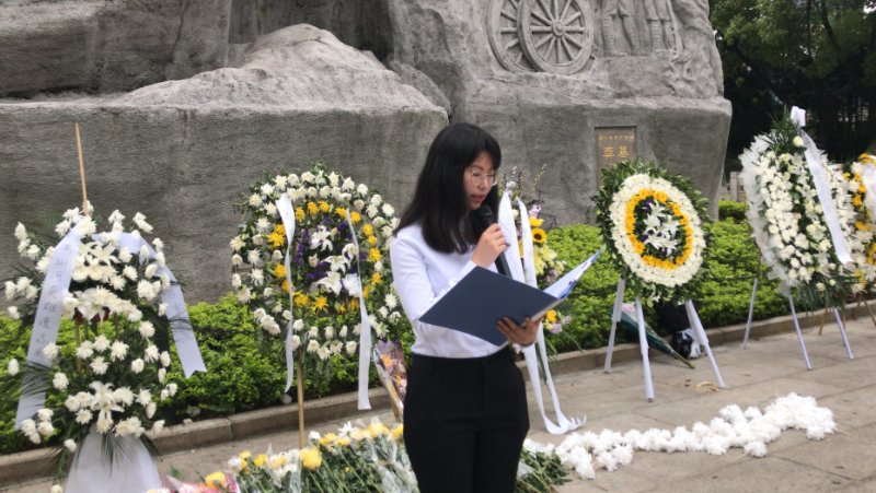 首先,叶婷钦同志向同志们介绍此次活动的意义以及广州起义烈士陵园的历史背景和革命烈士们的英雄事迹。随后,进行此次活动的第一项流程——奏唱国歌,紧接着是第二项流程——为广州起义壮烈牺牲的烈士们献上鲜花,表达对烈士们的思念和敬仰之情。