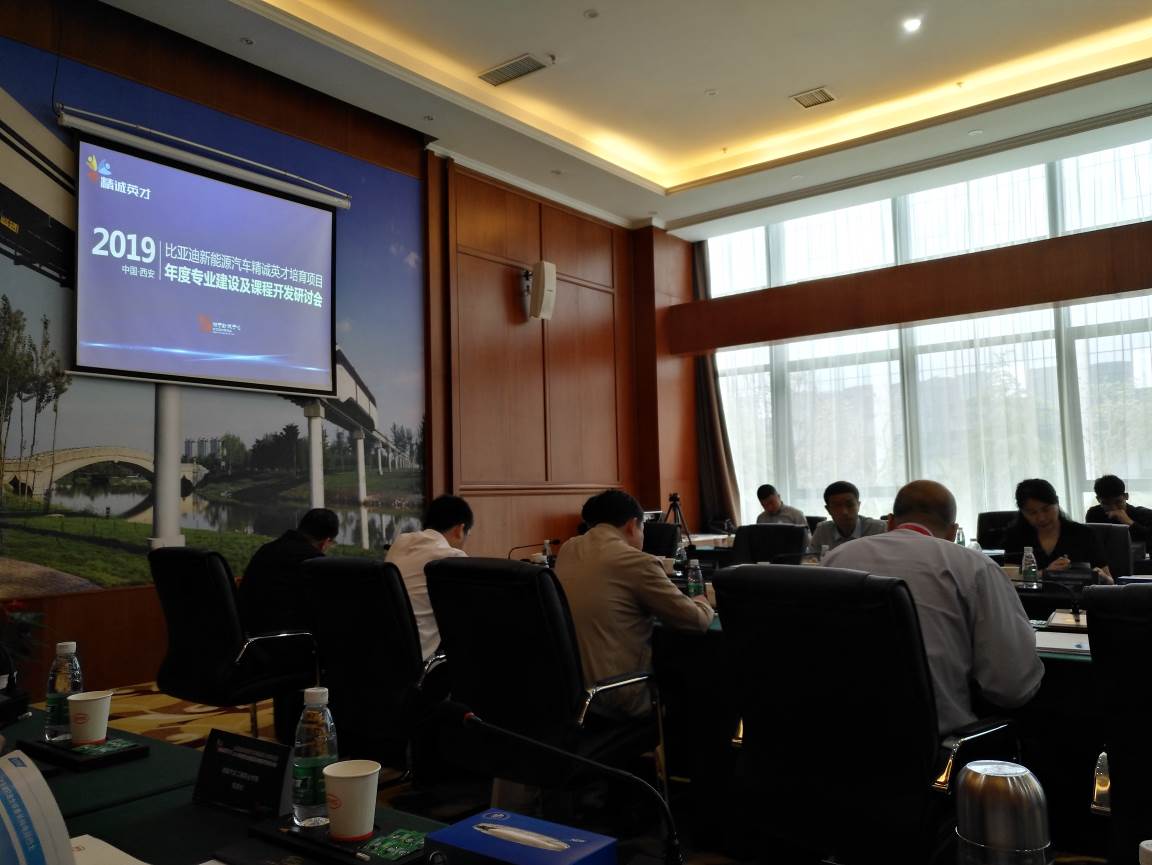 2019年4月26日,汽车工程学院院长王艳芬带队到西安比亚迪新能源汽车生产基地参加了2019年比亚迪新能源汽车精诚英才培育项目工作启动会,并在会上做了专业建设意见分享。中车云商(北京)信息技术有限公司、比亚迪汽车服务有限公司及来自全国24个项目合作院校代表参加了会议。