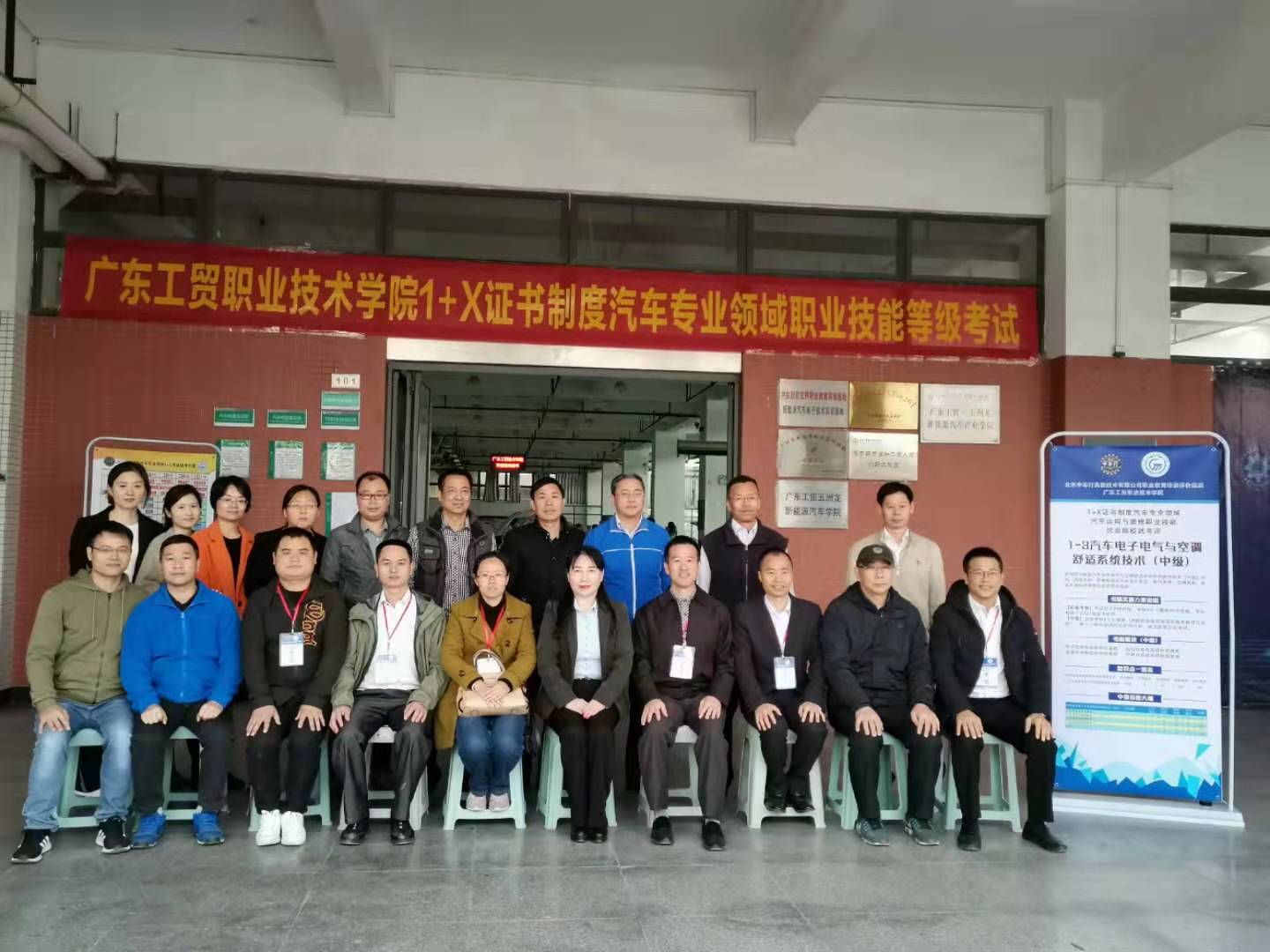 考评员和工作人员合影 为了更好地提升“试考评”的成效,学校汽车工程学院成立了以学院党总支书记和院长为组长的工作领导小组,制定了《关于汽车专业领域1+X职业技能等级证书“试考评”工作方案》全面推进试考评工作。 首先,汽车工程学院以此为契机,加强宣传“1+X”职业技术等级证书政策,发动学生报名参与。学生反应热烈,经过自愿报名、笔试、面试等层层筛选,最终选拔出32名学生参加本次“试考评”。 另外,学院加强了1+X证书考评设备建设。为了确保考评顺利开展,学校建设了2个专业考评实训基地,前后共投入了260多万元资金开展实训场所建设,打造了具备 16 个考核工位、12辆整车为主体、多个实验台架为补充的完整成熟的实训考核体系。
