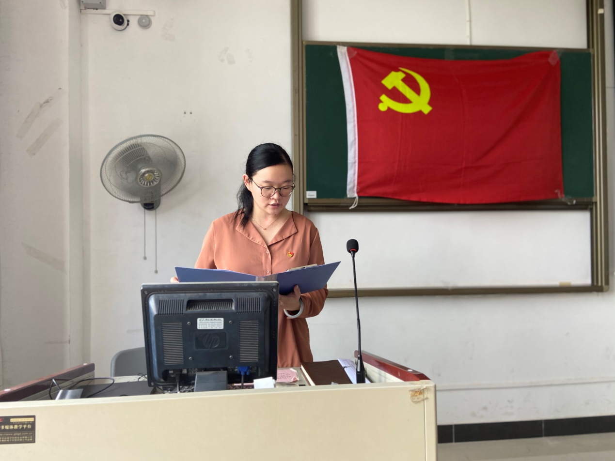 支部书记刘彩云主持会议 大会伊始,支部书记刘彩云向大家介绍了本次大会流程,会议严格按照党组织预备党员转正程序,并强调本次会议的严肃性。会议议程主要包括:预备党员逐一汇报预备期一年以来的工作总结,并进行答辩,与会人员发表意见和建议,与会正式党员逐个讨论,并以无记名投票方式逐个表决。随后,与会的正式党员对申请转正的预备党员逐一进行讨论以及不记名投票表决,最后由刘彩云宣读预备党员转正的决议,经过逐一讨论表决同意杨舒妍等13名预备党员如期转为中共正式党员。