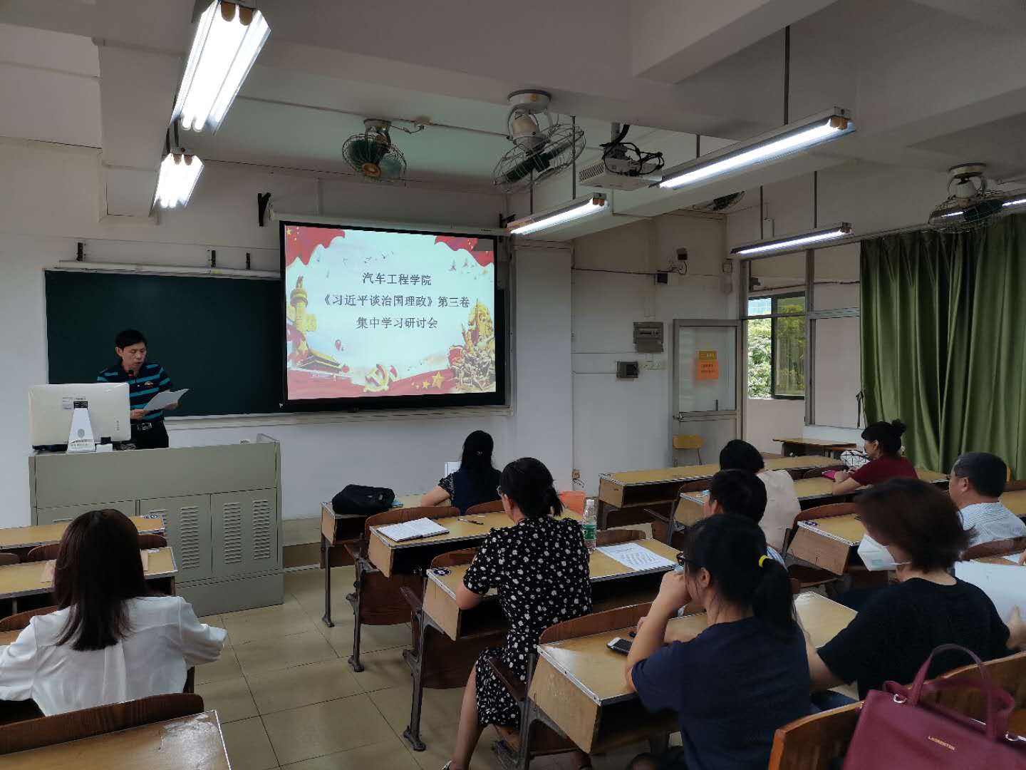 根据学校《关于开展政治理论学习的通知》相关文件精神,9月29日下午,汽车工程学院在学校西区综合楼401开展《习近平谈治国理政》第三卷集中学习研讨会,会议由党总支书记彭卫东主持,全体教师党员参加了会议。