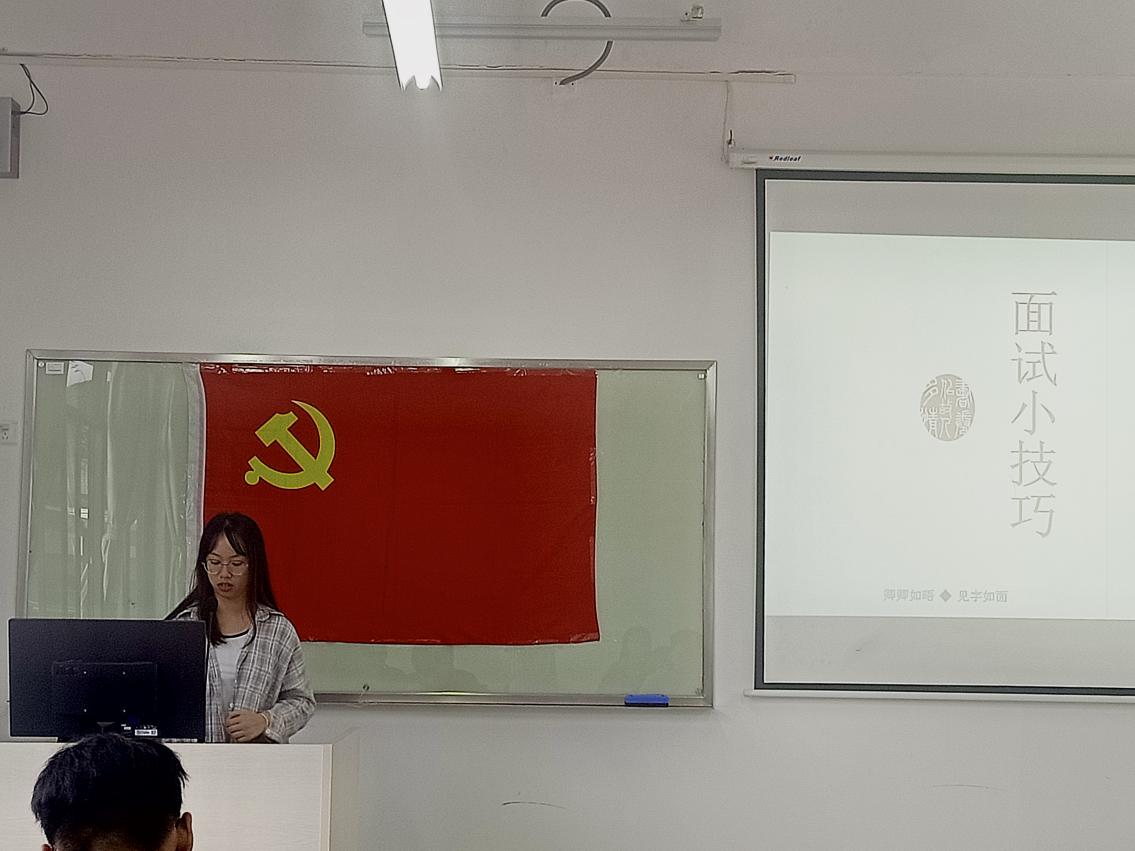 党章学习小组分享 学校将于周末举行校企招聘会之际,宣传部的同志给大家分享了关于面试的小技巧。例如面试中的基本礼仪,如何回答面试官的问题,对于面对面试官时怎样能做到不紧张,如何巧妙的运用与人交往的舒适感,拉近与面试官的距离,让大家了解了更多关于面试的注意事项,同时,祝愿毕业班的同志能找到自己理想的工作岗位。