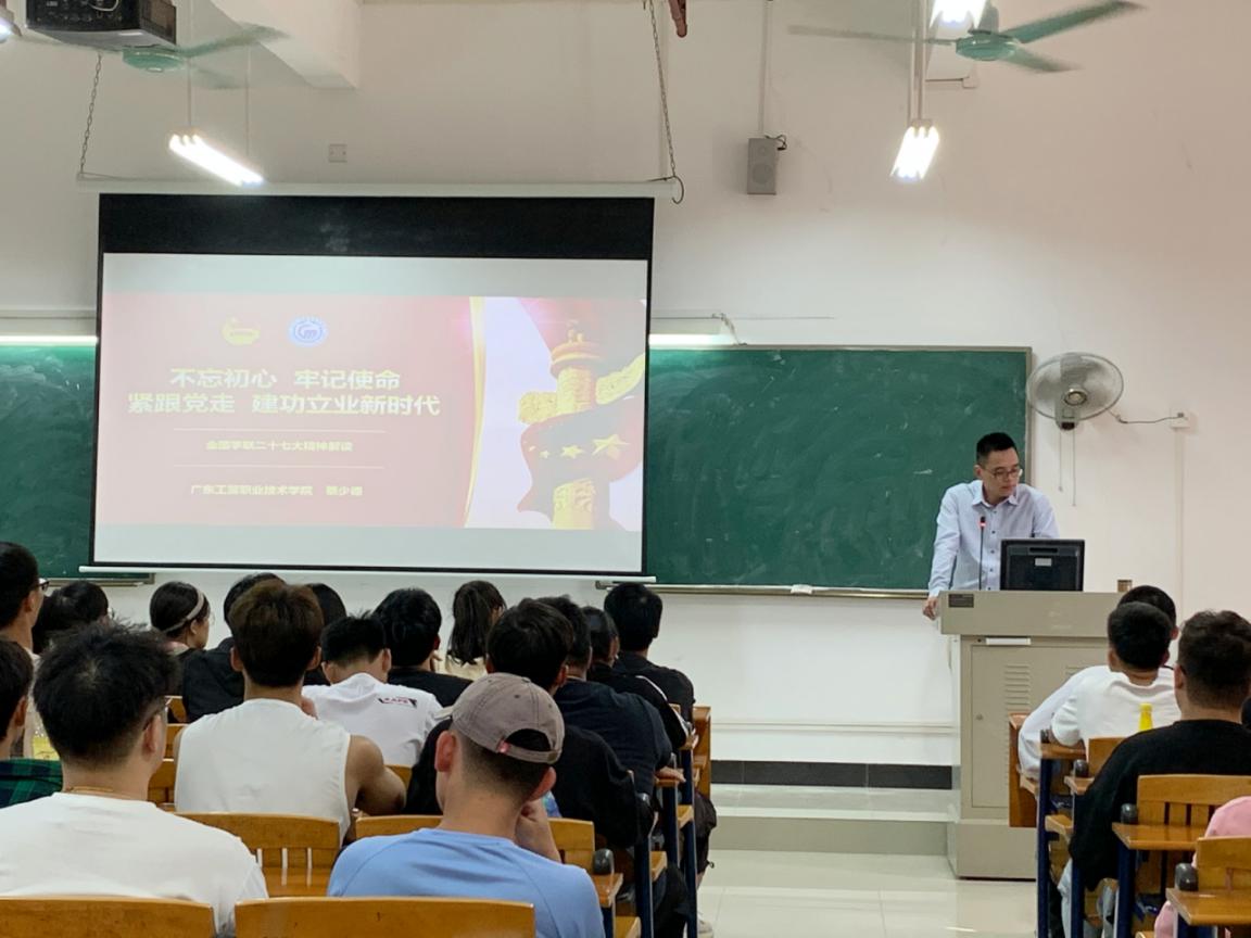为学习传达全国学联二十七大会议精神和习近平总书记贺信精神,贯彻落实习近平总书记关于青年工作的重要指示精神,进一步深化汽车工程学院学生会改革,增强我院学生会的政治性、先进性、群众性,打造一个政治可靠、砥砺奋进、根植同学、清新阳光的学生会。11月10日下午,汽车工程学院在白云校区明德楼2-302组织开展全国学联二十七大精神解读专题活动。此次专题活动由汽车工程学院团委书记蔡少德主讲,参加成员包括我院团委班子成员、院学生会全体成员、院青协主要负责人及全体班级代表。