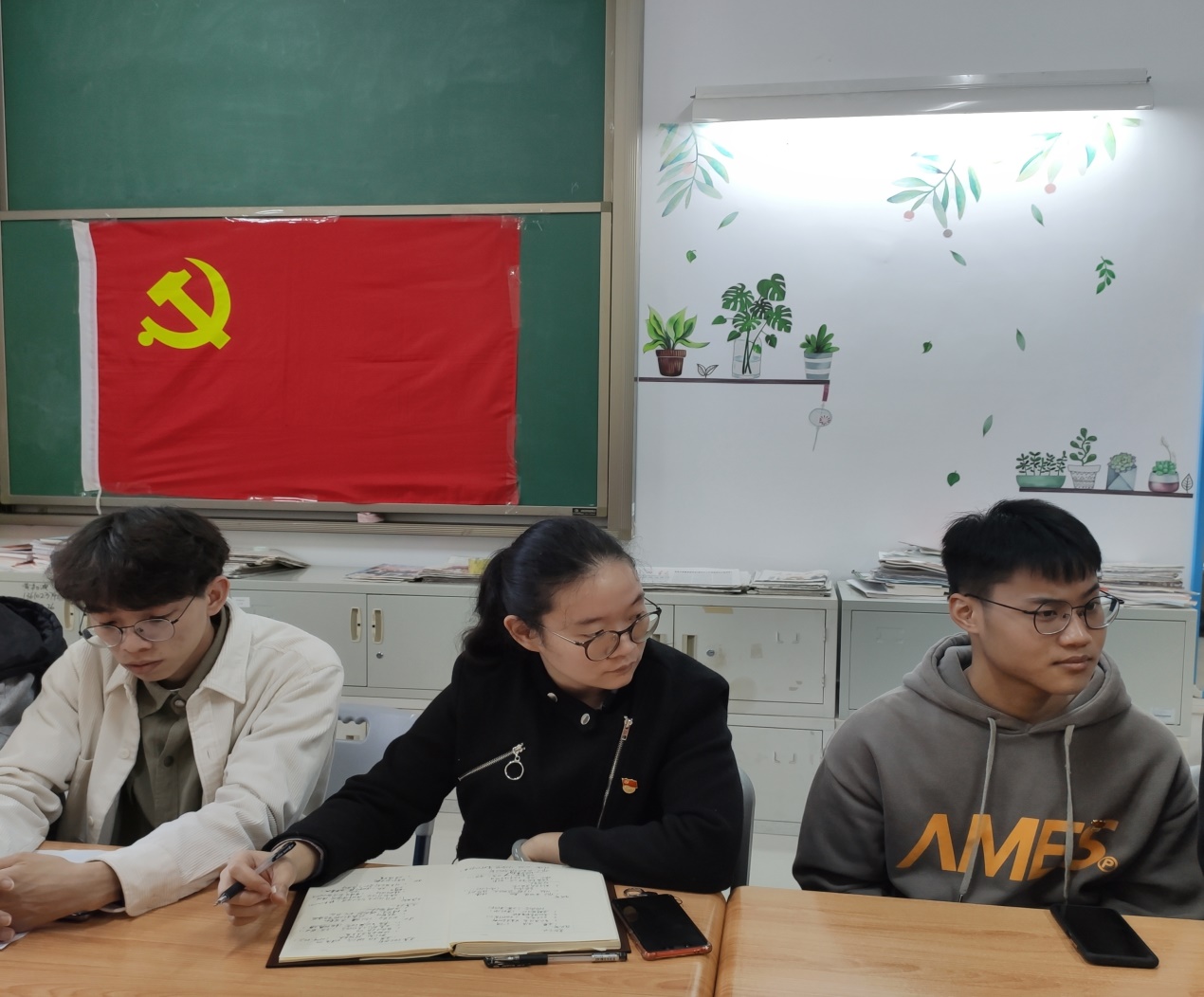 会议现场 会前,各部门就加强党支部建设以及本学期工作计划进行了讨论。会上,各部门负责人进行了总结发言。组织部提出,可以组织党支部成员参观红色基地,开设党群服务中心等建议。宣传部提出,以红色书籍、红色影视为主题开展系列推文,还提出将针对成员写作能力、推文编辑能力、拍摄、录像技能等进行系统培训,进一步提高相关工作能力。党章小组部提出,将作好本学期的党章学习工作,以全党开展党史学习教育的契机加强对入党积极分子、发展对象和预备党员的教育培养考察工作,严守党员发展标准,把好学生党员发展的入关口。志愿部提出,将进一步作好校内外志愿活动的开展组织工作,发挥大学生的青春力量。 最后,刘彩云针对各部门的发言进行总结并提出意见建议,她希望党员同志始终坚定理想信念,着力锤炼高尚品格,不断增长能力才干,勇于投身创新创造,加强党史学习,与党支部同成长。