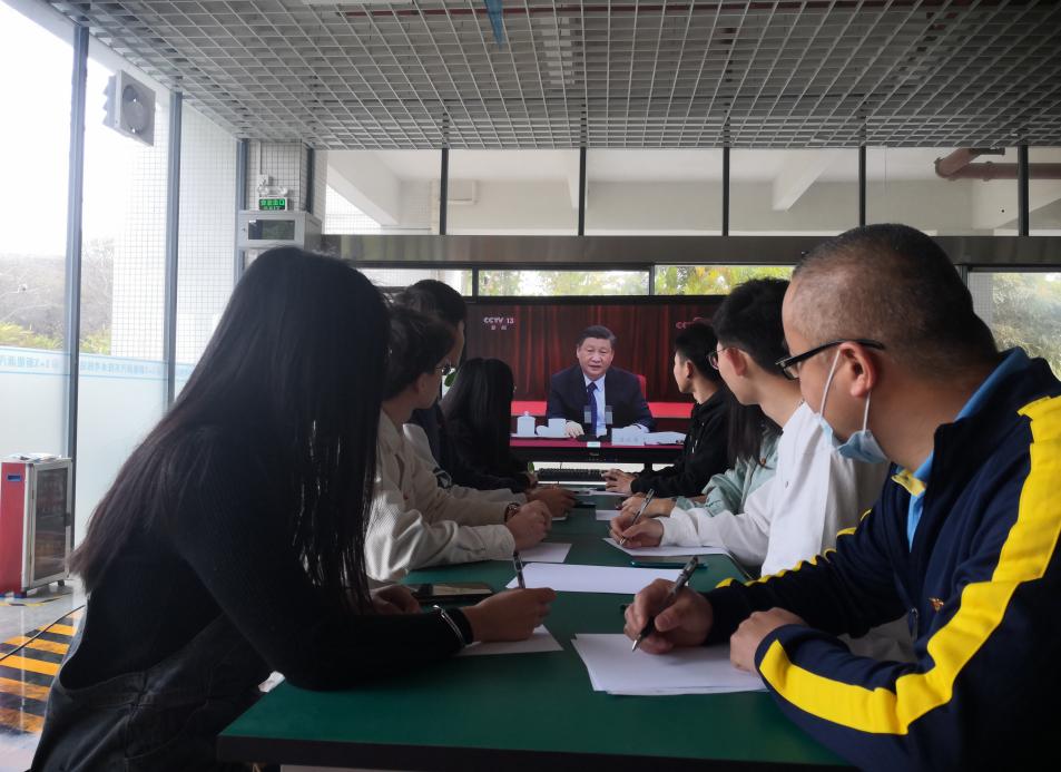 最后,陈宏伟老师对发言进行总结并提出建议,他希望全体党员能以正确的态度去学习习近平总书记的讲话精神,不忘初心,牢记使命,贯彻落实讲话精神,以实际行动勇挑重担、苦干实干,在新时代新征程中留下许党报国的奋斗足迹。