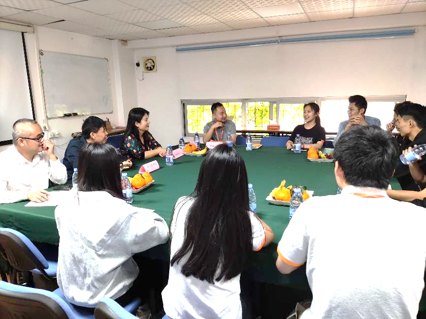 企业座谈现场 随后,学院领导一行与在企实习学生进行了座谈。学生轮流讲述了自己在企业实习的体会,表示在企业学习到产品运营、产品推荐、客户交谈技巧、办公软件处理等知识和能力,也感谢企业通过培训、指导、训练营等方式带领自己渡过职场的迷茫期,找到职场的目标。彭卫东表示看到了学生在企业的成长,感谢企业用心培养,给予学生宝贵的培训机会以及关怀 和指导。欧敏对实习学生们提出几点期望:一是要在企业大展拳脚,回报企业的用心培养;二是定好自己的职场目标,找准自己的职场定位;三是在保证人身安全的前提下,多吃苦,多主动找苦吃,多历练。同时嘱咐学生要把各项安全事项常放心上,并强调要遵守企业和学院的有关规章制度,确保顺利完成学业。