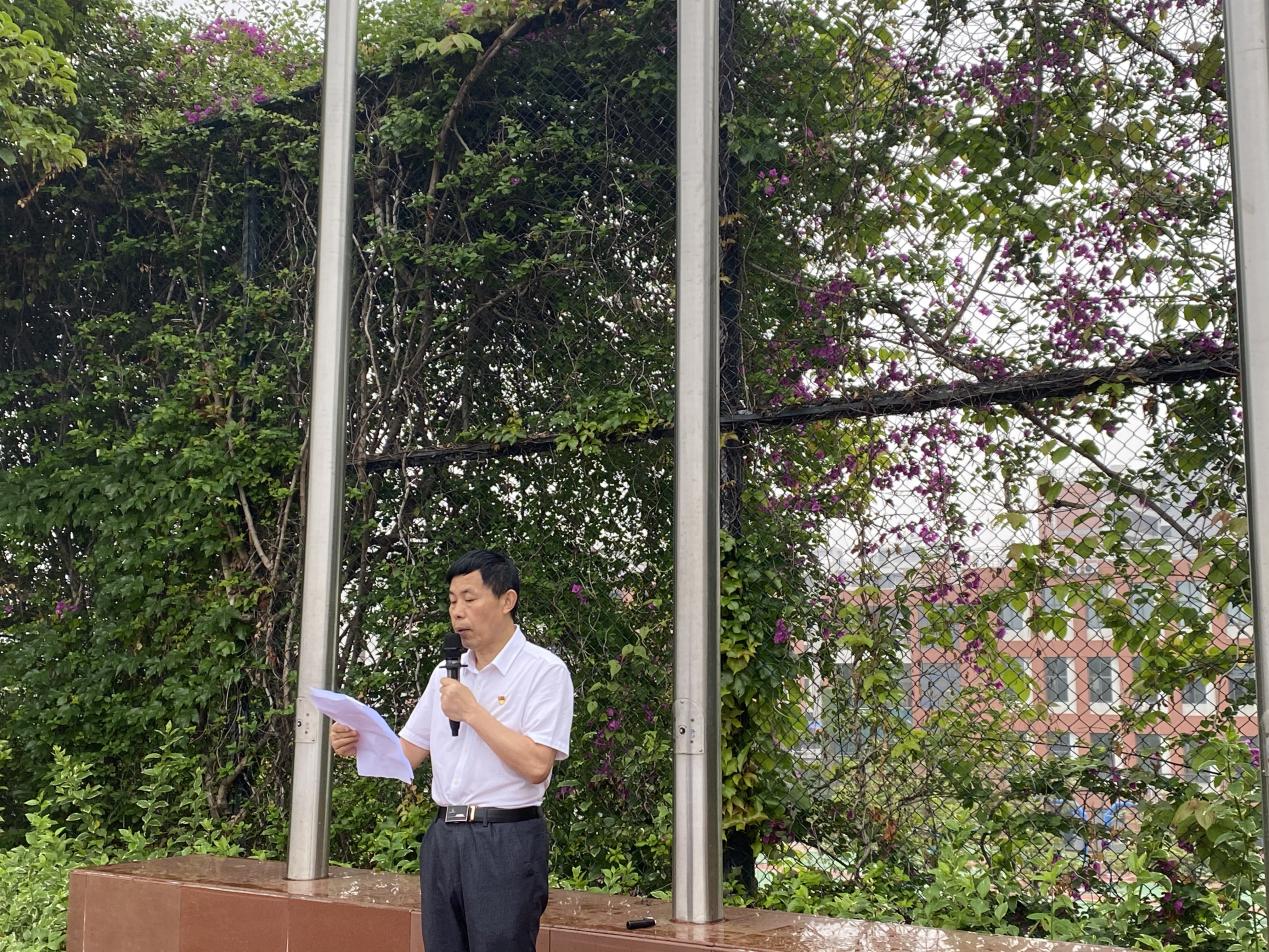 全体师生向国旗行注目礼 升旗仪式后,学院党总支书记彭卫东发表讲话。他指出,在中国共产党百年华诞的重大时刻,在“两个一百年”奋斗目标历史交汇的关键节点,中央作出了开展党史学习教育的重大决策,全国上下掀起了党史学习的热潮,他号召所有的青年学生积极投身其中,青春向党,学习党史,传承红色基因,发扬红色传统。希望学院全体学生能时刻铭记工贸“寻真求是,格物致知”的校训,不忘恩师的谆谆教诲,发扬工贸精神,牢记当代大学生应有的社会责任感与历史使命感,在光辉的校史写下更辉煌的篇章,献礼建党一百周年。