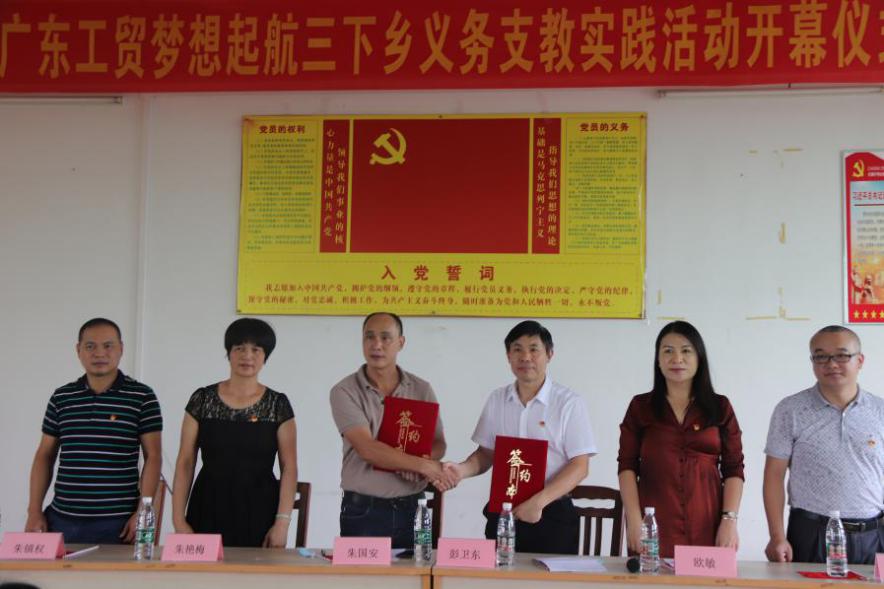 汽车工程学院党总支副书记欧敏致辞 然后湴湖村党委副书记、村委会副主任朱国安代表湴湖村全体村民对此次活动表示欢迎和支持,湴湖村全体村民会为此次活动提供最大的配合,同时,老榕树下讲党史、诵读红色经典、建党诵读等主题活动也可以让村民充分感受中国共产党始终全心全意为人民服务的宗旨,同时也对参加实践活动的同学们提出认真负责教导、密切关注孩子情况、在此次活动中可以有所成长、有所收获三点建议。 作为此次参加实践活动的“梦想起航”公益服务队队长,杜冰淼同学也向学院领导和湴湖村表示所有队员会全力以赴完成此次活动。 随后,开幕式进行到下一个流程,由汽车工程学院党总支书记彭卫东与湴湖村党委副书记、村委会副主任朱国安共同签署《校村组织党建工作结对共建协议书》。