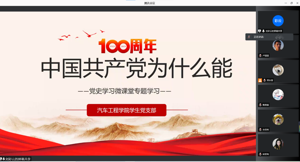 83日,汽车工程学院学生党支部在线上开展了党史学习微课堂之暑期专题学习班第二次专题学习。此次学习由学生党支部书记刘彩云主持,与会人员为支部全体党员。