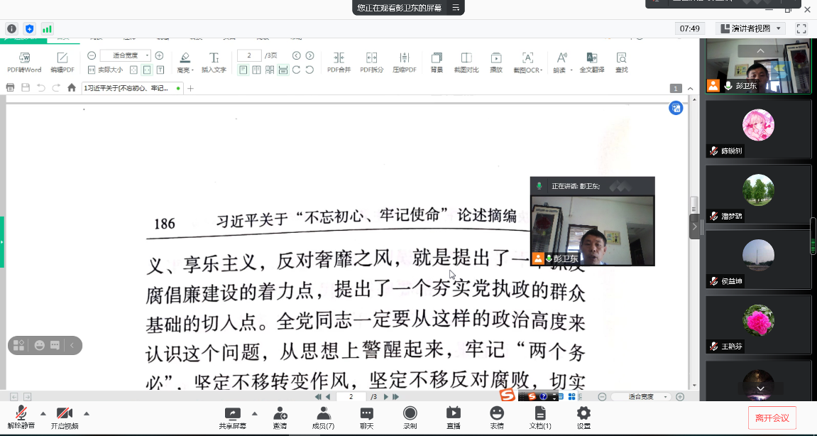 彭卫东分享学习《习近平关于“不忘初心、牢记使命”论述摘编:坚决整治形式主义、官僚主义,加强真抓实干的作风建设》