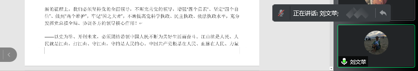刘文苹同志带领大家学习《习近平同志在庆祝中国共产党成立100周年大会上的重要讲话》