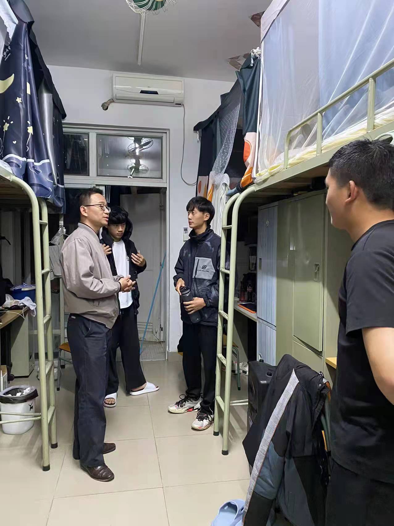 专任教师黄丽英与学生一对一交流指导面试技巧 建立朋辈关系,护航成长之路 甘俊旗博士走访21级新生宿舍,了解学生的日常生活和学习情况,与学生们谈心谈话并提醒同学们关注气温及时增减衣物。甘俊旗博士在学生宿舍走访过程中,真诚的对待每一位同学,与同学们建立了一种平等的、朋友式的师生关系。关心学生就是胸中装着学生,心里想着学生,服务与学生,当学生心理产生苦恼时,及时帮助解开疙瘩,排忧解难,做学生的良师益友。