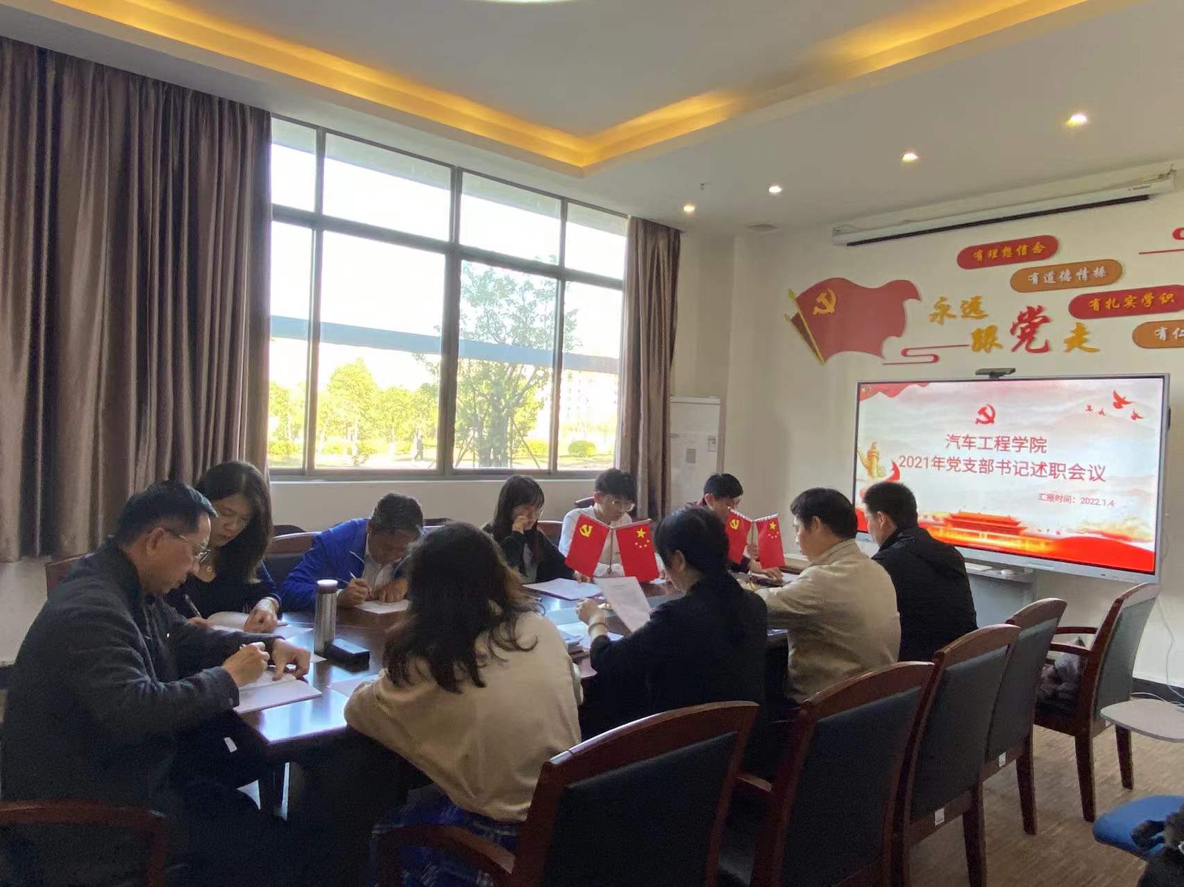 为全面贯彻习近平新时代中国特色社会主义思想,压紧压实基层党建工作责任,根据《中共菲律宾亚星222官网委员会2021年度学校基层党组织书记抓党建述职评议考核工作方案》(粤工贸院党字〔2021〕78号)文件精神,汽车工程学院党总支于2022年1月4日在白云校区教师发展中心召开2021年度基层党支部书记述职考核会议,对学院两个教师党支部和一个学生党支部进行考核。学校党委委员、副校长杜汉清,汽车工程学院党总支全体成员、各师生党支部书记以及党员代表参加了会议。