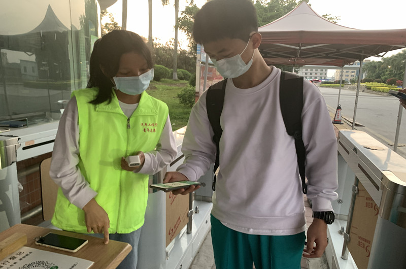 志愿护航,温暖同行。为确保来自各地的学子健康返校,志愿者们提前来到校门口集合,在学校安保人员的统一安排下,志愿者们在各自岗位做好防疫工作。大家有序分工、相互配合、耐心引导,认真地对待每一项流程,迎接工贸学子返校。