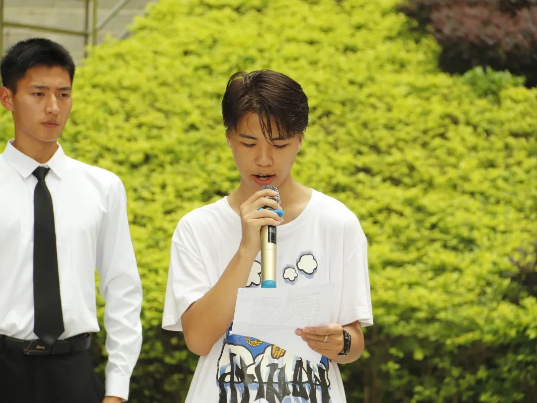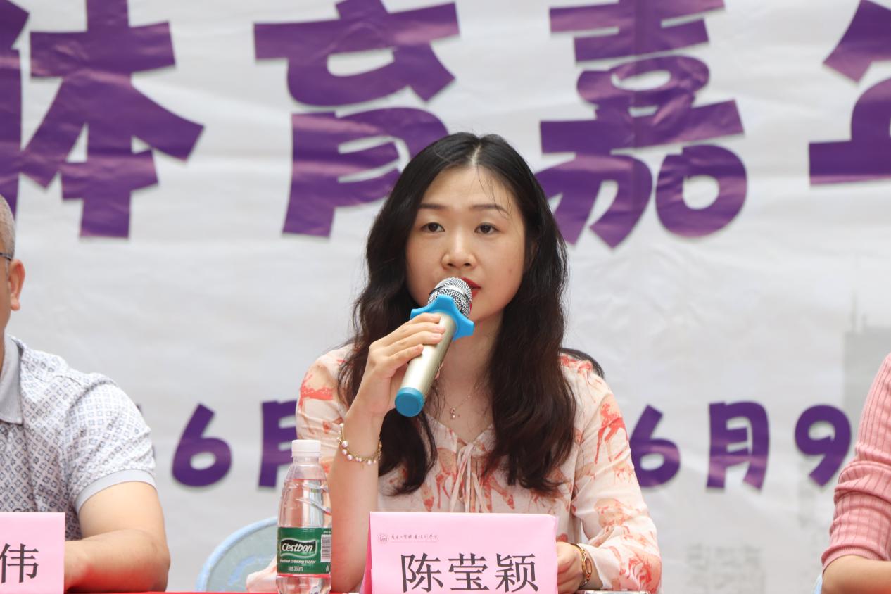 (辅导员陈莹颖发言) 学生代表钟涛鸣发言,他希望本次活动不仅能促进学院的内部团结,还能丰富学生的课余生活,加强同学们体育锻炼意识,同时呼吁同学们走出宿舍,走出操场,以健康、快乐的心态投入到体育节活动中来,让健康和快乐永远围绕在我们身旁!