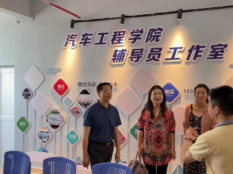 何汉武校长等一行人参观汽车工程学院班主任工作室 我院党总支副书记欧敏介绍了班主任工作室和辅导员工作室的建设目标、品牌活动和实施举措,以及接下来继续依托工作室平台持续推进思想政治教育工作的思考和展望。
