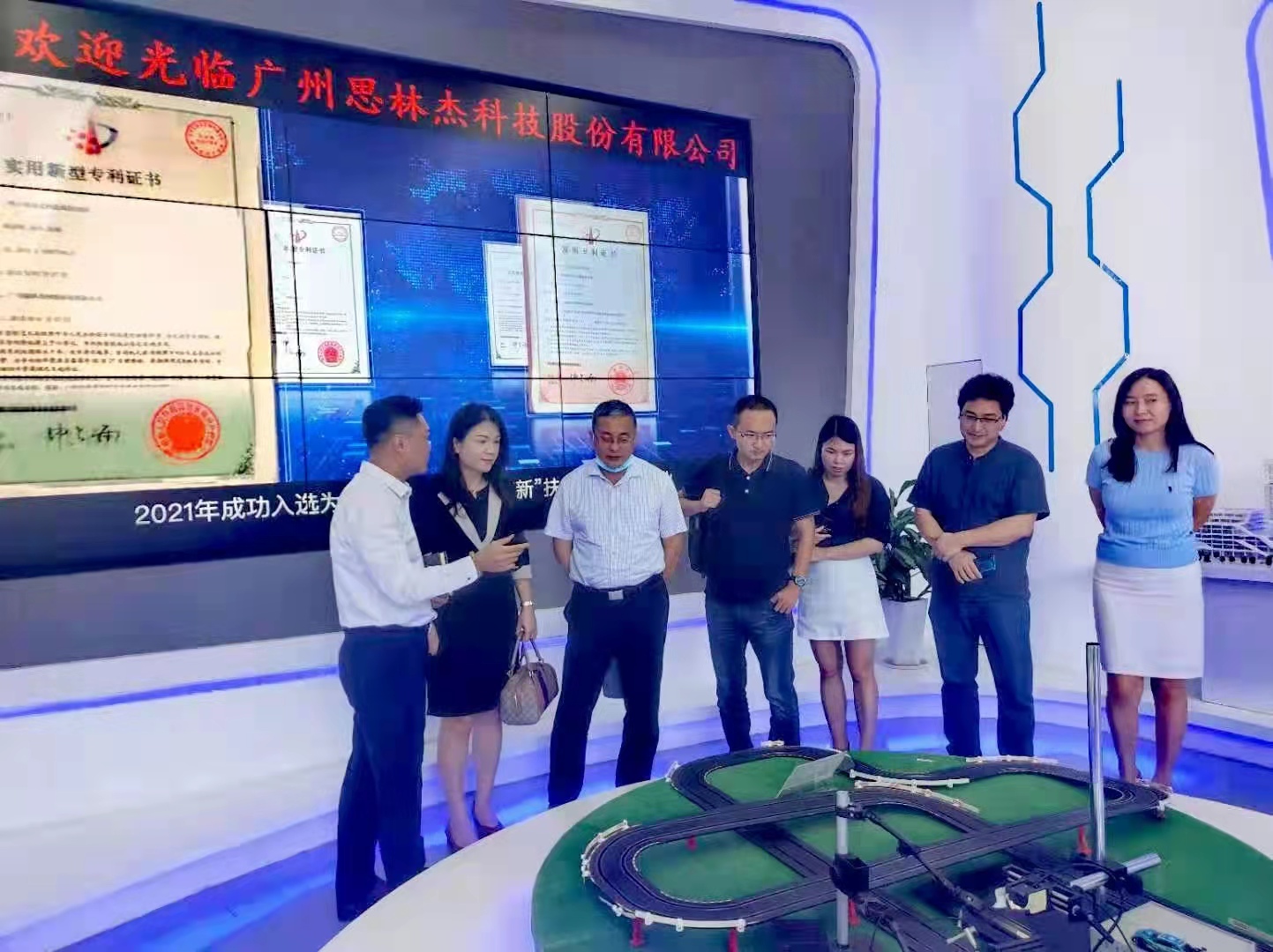 为进一步深化产教融合,积极探索人才培养新方式,实现专业与产业、企业、岗位无缝对接;同时为进一步激发创新创业潜力,提高创新创业能力。7月12日下午,创新创业学院副院长王坤明、汽车工程学院副院长潘梦鹞、汽车工程学院副书记欧敏及三名博士吕猛、黄美红、桂晶晶一起走访广州思林杰科技股份有限公司;广州思林杰科技股份有限公司总工程师刘洋、市场部总监陈昕、市场部经理杨娜、总经理助理张霖参与座谈。双方就校企合作、人才培养以及联合开发创新创业项目等事项进行深入交流。 与广州思林杰科技股份有限公司交流现场 座谈中,首先陈昕介绍了企业的发展历程及现有核心技术;其次刘洋从公司主营业务、公司业绩成果、用人需求及公司文化等方面进行详细介绍;同时他指出,企业有意向与学校合作,愿意共享政府与企业资源、共同研发创新项目、大力推进创新创业项目落地实践。紧接着潘梦鹞介绍了学院专业设置、师资力量、学生就业方向及人才培养目标等;他表示希望能够与企业联合开发科技创新项目、助推产学研融合创新,引领高校与企业高质量发展,实现校企双赢。 参观广州思林杰科技股份有限公司科技展厅