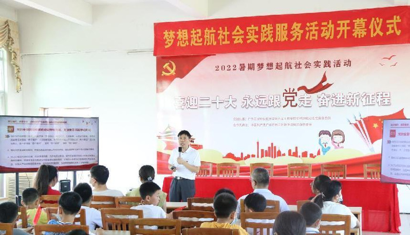 为迎接党的二十大的胜利召开,宣传广东省第十三次党代会精神,助力乡村振兴。汽车工程学院“梦想起航”社会实践队于2022年7月13日上午10点在广州市白云区湴湖村文化艺术中心的会议厅,由汽车工程学院党总支书记彭卫东组织开展“党课下乡”活动。“梦想起航”公益服务队19名队员、湴湖村部分党员和参与“三下乡”社会实践活动的学生参与了此次党课学习。