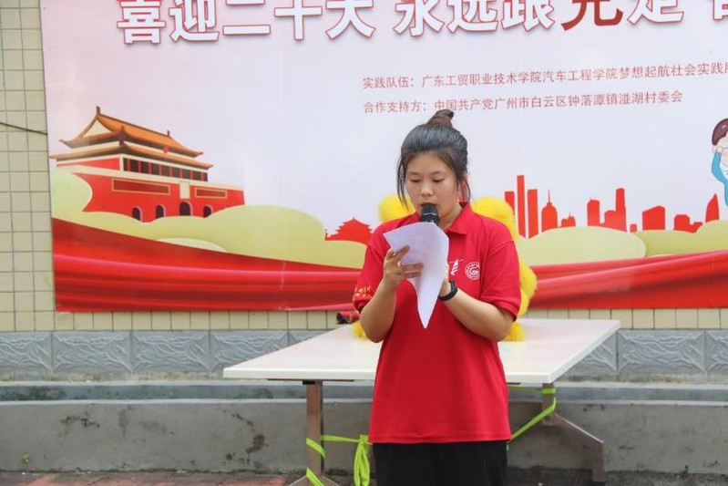 湴湖村党委委员林玮昕 仪式伊始,由湴湖村党委委员林玮昕致辞,她向此次参加三下乡社会实践中付出辛勤的汗水、做出积极贡献的老师和同学们表示衷心的感谢与问候。此次三下乡活动不仅增强了服务队队员志愿服务意识,明确了社会责任,增长了学习才干,发现了自身不足,小朋友们也在暑期丰富了精神文化生活。