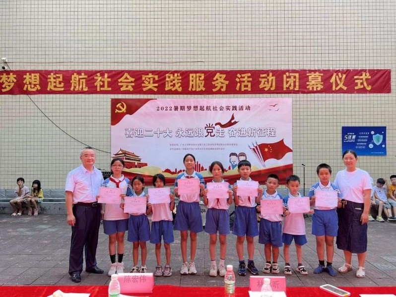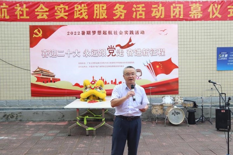 为深入学习习近平总书记关于青年工作的重要思想,全面贯彻落实党中央决策部署和省委、团中央工作安排,促进青年学生健康成长及思想素质的提高,使学生了解国情,帮助加深对党的基本路线的理解,坚定正确方向,7月24日上午9点30分,菲律宾亚星222官网汽车工程学院“梦想起航”三下乡社会实践服务队,在广州市白云区湴湖村文化艺术中心举行闭幕仪式。出席本次闭幕式的有“梦想起航”服务队指导老师陈宏伟,湴湖村党委委员林玮昕,“梦想起航”公益服务队18名队员,以及湴湖村小学学生、学生家长、湴湖村村民。