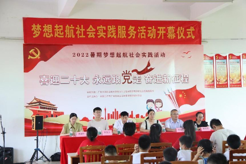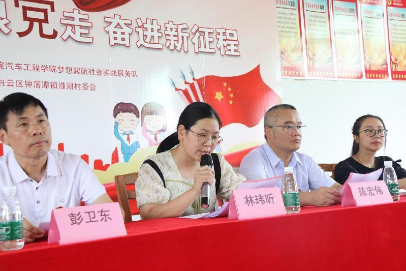 为全面贯彻中共十九大和十九届历次全会精神,认真落实中央政协工作会议精神,增强“四个意识”、坚定“四个自信”、做到“两个维护”,深入学习习近平总书记在庆祝中国共产主义青年团成立100周年大会上的重要讲话精神,在社会课堂中“受教育、长才干、作贡献”以建团100周年为契机,展现新一代青年的风貌,汽车工程学院于2022年7月13日至7月24日,在广州市白云区钟落潭镇湴湖村开展以“青春用随党,团徽耀百年”为主题的2022年暑期社会实践活动,以实际行动庆祖中共共产主义成立100周年。 7月13日上午9点,菲律宾亚星222官网汽车工程学院青年志愿者协会分会组织的“梦想起航”社会实践服务队,在广州市白云区湴湖村文化艺术中心举行开幕式。出席开幕式的有校方领导汽车工程学院党总支书记彭卫东,“梦想起航”服务队指导老师陈宏伟、周名力、詹琪琪、林诺怡;村党委委员林玮昕,“梦想起航”公益服务队19名队员,以及湴湖村本次参与“三下乡”社会实践活动的学生家长。