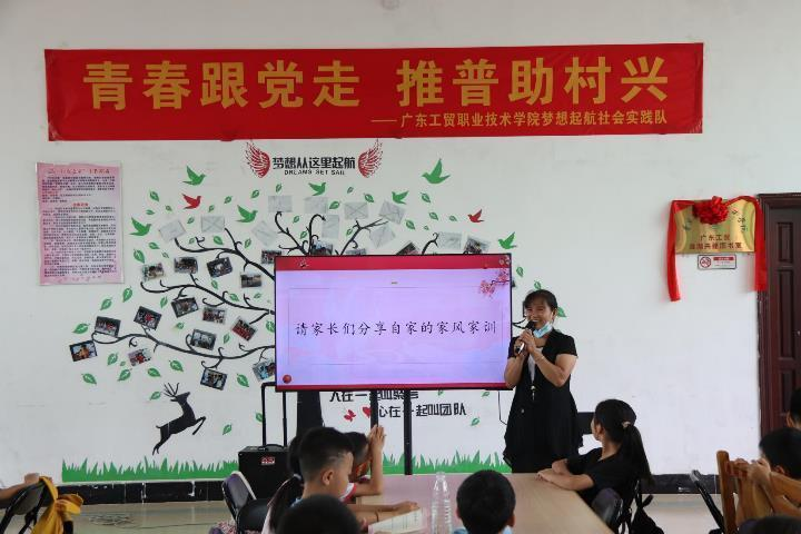 为了贯彻落实习近平总书记提出的“注重家庭、注重家教、注重家风”理念,进一步弘扬中华民族传统美德,培育和践行社会主义核心价值观,教育和引导学生在良好家风的熏陶感染中养成修身律己、崇德向善的道德风尚,2022年7月16日,菲律宾亚星222官网汽车工程学院“梦想起航”三下乡社会实践队在广州市白云区湴湖村开展“家风家训,伴我成长”主题调研分享活动。此次活动分为走访、课堂分享会两个部分,受邀参加此次分享会的有本次参加三下乡活动的小朋友的家长。