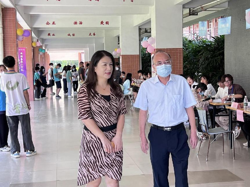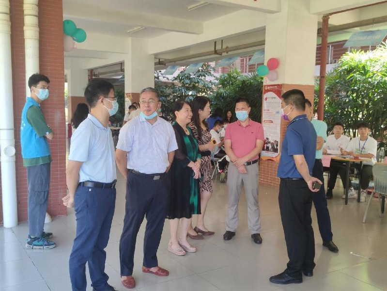 学校领导合影 迎新现场人声鼎沸,各项工作如火如荼开展,学生们佩戴口罩,拖着行李,有序进入专用通道,配合工作人员进行体温检测、健康码和行程码的核查,并按照报到流程依次到各班接待点报到,领取相关物品。班主任们耐心解答新生的疑问,志愿者们热情帮助学弟学妹们搬运行李并介绍校园环境和生活经验,细致周到的服务态度,获得了新生们的一致肯定。