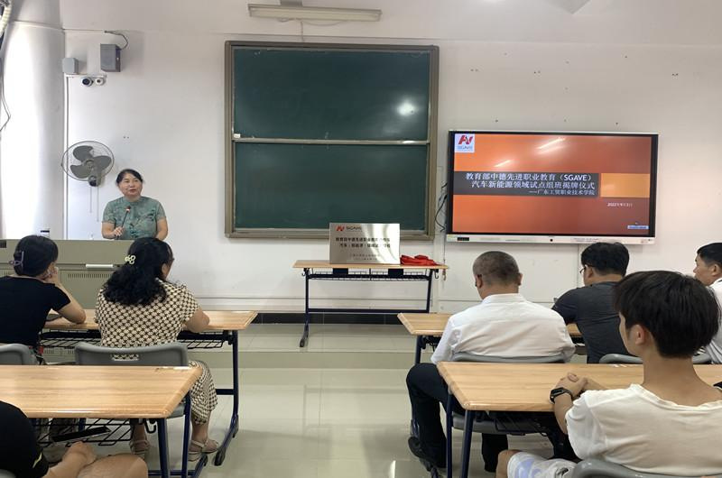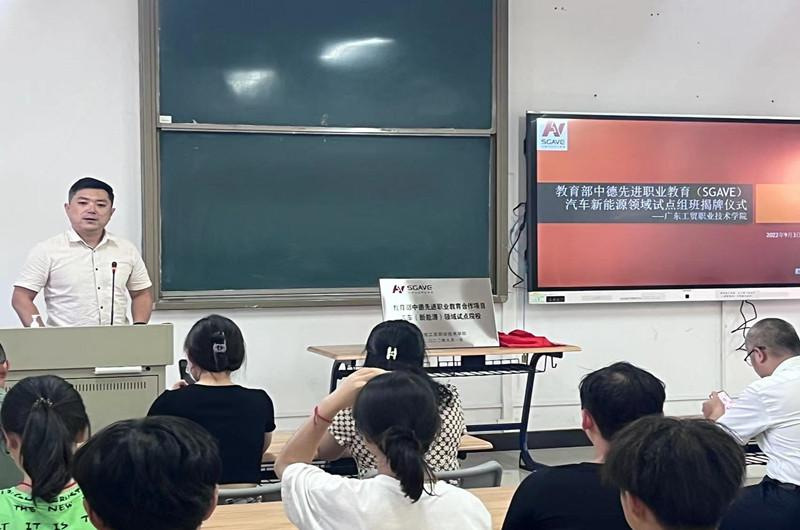 随后,彭卫东书记正式宣布教育部中德先进职业教育(SGAVE)汽车(新能源)领域试点组班成功。他强调组建中德先进职业教育(SGAVE)汽车(新能源)领域试点班的目的是为了打造新能源汽车技术专业人才培养的质量名片,增强职业院校大学生的志气、骨气、底气培养具有高素质高能的国际人才。希望同学们埋头苦干,好好学习努力成为新时代具有工匠精神的全方位高素质技能人才。