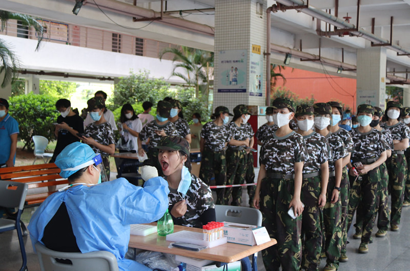 医护人员核酸检测现场 核酸检测工作有序推进,检测全程一人一消毒,医务人员在现场进行咽拭子采样,全程动作麻利,专业高效。医护人员对采集管上标好的信息进行反复核对,采样前核对个人基本信息,采样后将咽拭子装入贴有采样编码的试管内,装满后密封装箱,统一送检。