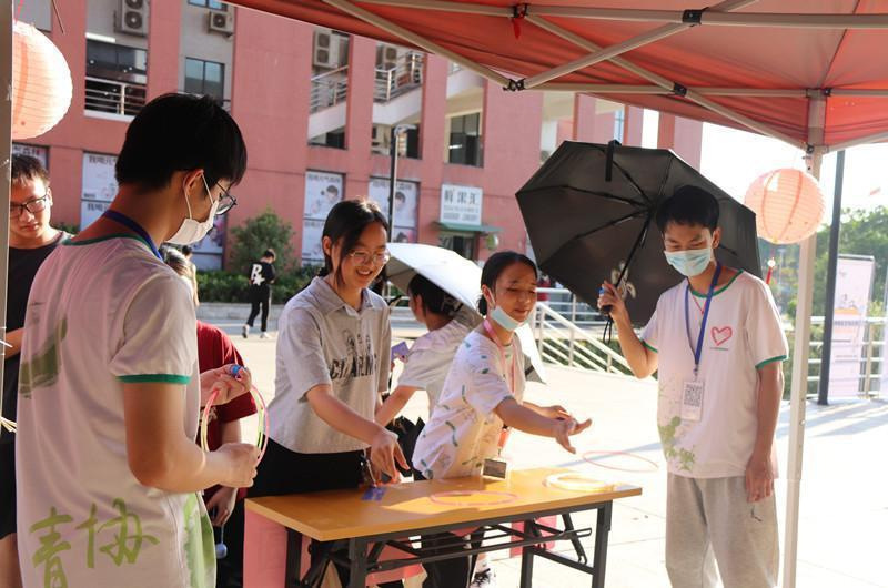 活动现场 为活动能够顺利进行,让同学们有更好的体验感,工作人员们早早抵达现场,进行场地的布置。下午四点,活动准时开始,同学们陆续来到现场排起了队。此次活动以四个小游戏的形式开展,分别为转盘飞花令、卡片许愿、猜灯谜、套圈游戏,工作人员们耐心的为每一位参与游戏的同学讲解规则。现场的同学们热情高涨,使整个活动现场充满了欢声笑语。