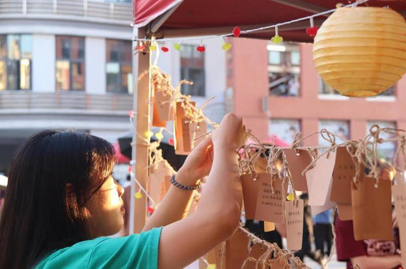 卡片许愿现场 晚上九点整,本次中秋游园活动圆满结束,此次活动的开展在一定程度上发扬中国传统文化,同时也为同学们营造了温暖快乐的节日气氛。通过此次活动,增进汽车工程学院青协分会与经济贸易学院青协分会的交流,促进了志愿者们团结合作的意识。