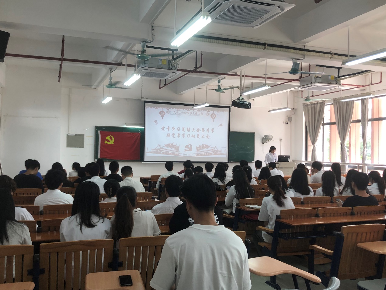 为迎接党的二十大胜利召开,进一步提高党员、发展对象、入党积极分子的思想政治觉悟,为日后更好的开展党支部工作奠定基础,踏上新的台阶,9月22日下午14:00,汽车工程学院学生党支部在明德楼2区204开展了上学期党章学习活动总结大会暨本学期党章学习动员大会,此次会议由支部党员黄奕婷主持,出席会议的有汽车工程学院党总支书记彭卫东、学生党支部书记刘彩云、支部在校党员以及20、21级各党章学习小组组长。