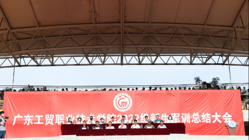 军训铸魂,步伐铿锵,英姿勃发,展我风采!9月22日上午8:30,迎着秋风,顶着烈阳,广东工贸职业技术学院2022级新生军训总结大会暨表彰大会在白云校区田径场隆重举行,党委副书记、校长何汉武,副校长刘贻新,副校长杜汉清,党委委员、党委办公室主任黄雄志,教务处处长赵文龙,学生工作处处长刘建军,团委书记陈冠峰,汽车工程学院党总支书记彭卫东,汽车工程学院院长王艳芬,军训团团长卢保林与2022级全体师生共同参与本次总结大会,共同检阅2022级新生在军训期间的训练成果。大会由党委委员、党委办公室主任黄雄志主持。