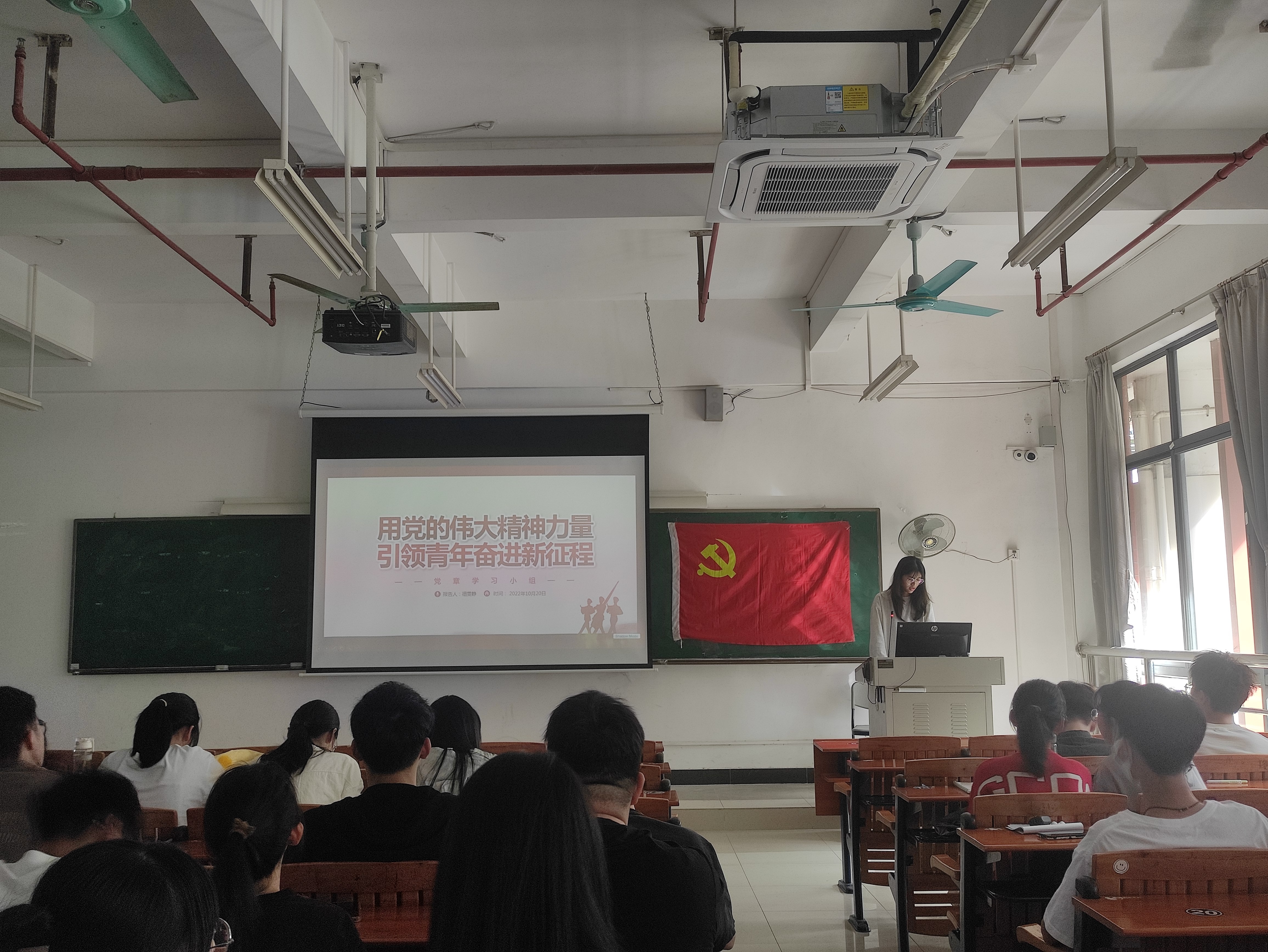 学习会现场 本次学习会上,林洁灵带领同志们一起深入学习习近平总书记重要讲话精神,分别从过去五年的工作和新时代十年的伟大变革、开辟马克思主义中国化时代化新境界、新时代新征程中国共产党的任务使命、推进文化自信自强、铸就社会主义文化新辉煌与坚持和完善“一国两制”这五个部分进行讲解。大家认识到,党的二十大具有重大而深远的意义,要认真学习贯彻党的创新理论,做到知其言更知其义、知其然更知其所以然,要坚定不移听党话、跟党走,怀抱梦想又脚踏实地,敢想敢为又善作善成,立志做有理想、敢担当、能吃苦、肯奋斗的新时代好青年,做好学生党员模范作用。