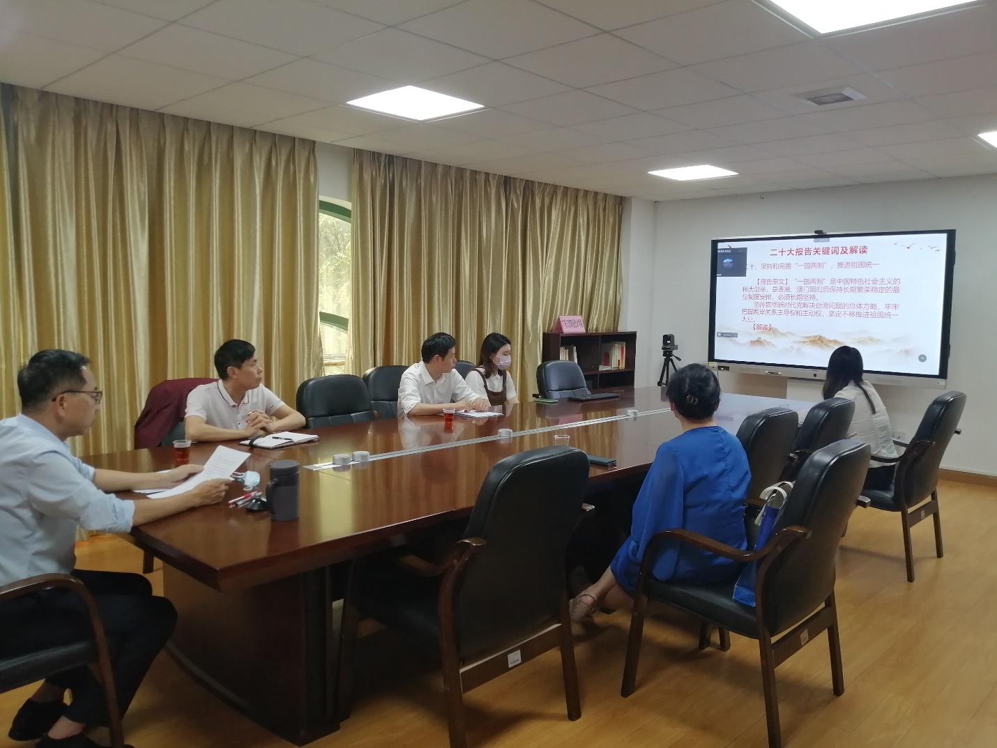 天河校区会议现场 会上,杜汉清围绕党的二十大主题和核心内容,从“党的二十大的重大意义”、“党的二十大报告关键词解读”和“把坚定正确的政治方向体现在学懂、弄通、做实习近平新时代中国特色社会主义思想上”三个方面对党的二十大精神进行了系统解读和深入阐释。他指出,中国共产党第二十次全国代表大会是在全党全国各族人民迈上全面建设社会主义现代化国家新征程、向第二个百年奋斗目标进军的关键时刻召开的一次十分重要的大会,大会科学谋划了未来五年乃至更长时期党和国家事业发展的目标任务和大政方针,明确宣示了我们党在新征程上举什么旗、走什么路、以什么样的精神状态、朝着什么样的目标继续前进的重大问题,对团结和激励全国各族人民为夺取全面建设社会主义现代化国家新胜利而奋斗具有十分重大的意义。