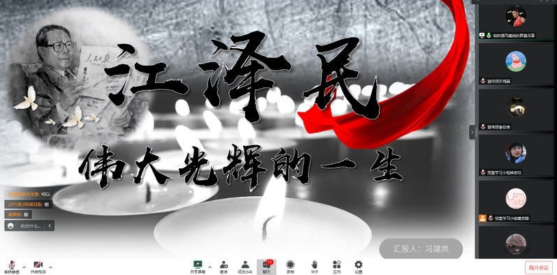 时事新闻分享环节 党章学习小组和组织部分享最近的时事新闻——神舟十五号的发射以及江泽民伟大光辉的一生。探索浩瀚宇宙,发展航天事业,建设航天强国,是中华民族不懈追求的航天梦,中国航天人不断超越自我,在逐梦太空的征途上,用奋斗书写不朽传奇。江泽民同志的逝世,对我党我军我国各族人民是不可估量的损失。中华民族的伟大复兴事业,凝结了包括江泽民同志在内的一代又一代共产党人的心血和奋斗。江泽民同志的优秀品格和高尚风范也将永远教育和激励我们前进。