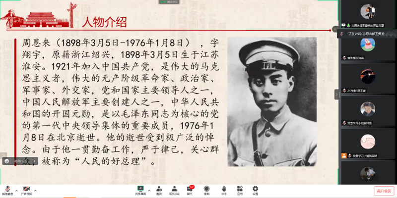 党史故事分享环节 志愿者部和宣传部带我们重温了党史故事——“人民的好总理”周恩来和舍身炸敌堡的特等功臣梁士英。革命先辈们在艰苦岁月中,矢志不渝、坚守信念,孜孜不倦地探寻中国解放之路,支部党员们不由自主地对老一辈革命家艰苦奋斗的革命乐观主义情怀产生崇高的敬意!