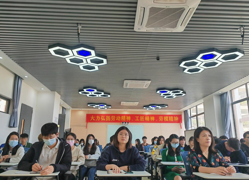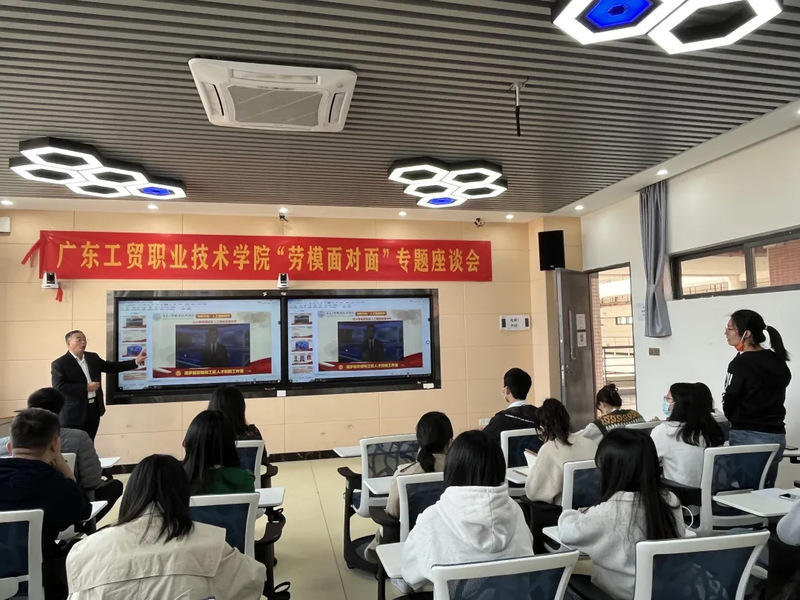 会议现场 随后,潘梦鹞教授讲述了立德树人的主要内容分别为守法意识,诚信意识,敬业意识,要有责任心和使命感,希望大家在今后的工作生涯中可以培养正确的价值观,提升自己的个人素养,树立良好的职业品德。 座谈会最后进入互动交流环节,潘梦鹞教授非常热情的给大家答疑解惑。他希望大家能够把劳模精神和工匠精神充分发挥到以后的工作和事业中,也祝愿大家在以后的学习生活中一帆风顺。