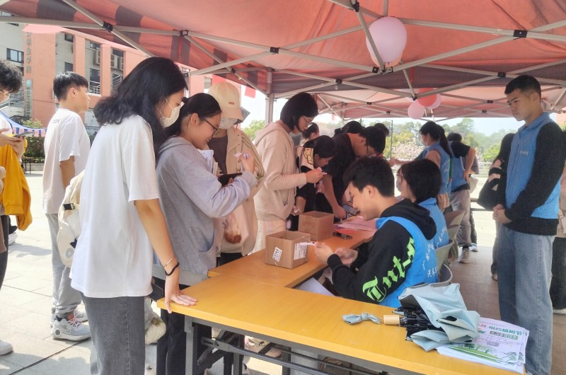活动现场 活动前期,22级青协成员提前到达活动现场,进行布置,为活动高效开展做足准备。活动开始,各学生通过宣传纷纷来到摊位,负责指定摊位的工作人员为学生进行游戏介绍,游戏分别为雷锋事迹卡片、植树节知识问答以及自由拥抱。在工作人员维持下,现场各环节井然有序,并在工作人员讲解中,同学们都积极参与到每个游戏环节,欢快、温暖的气氛充溢着整个现场。