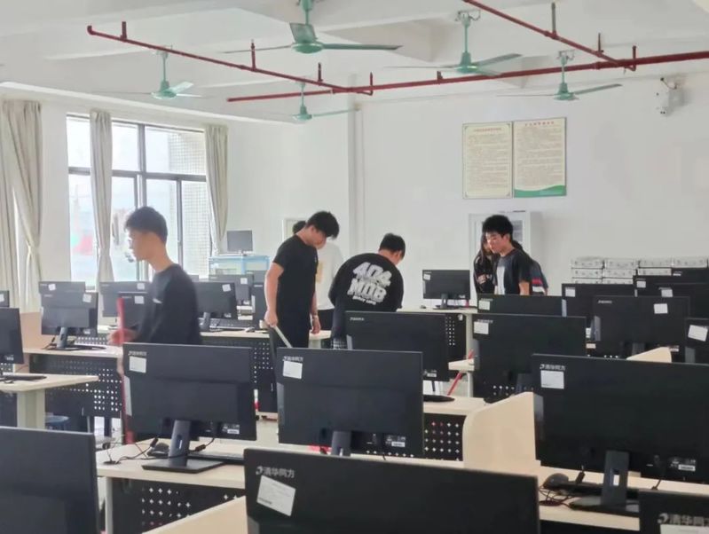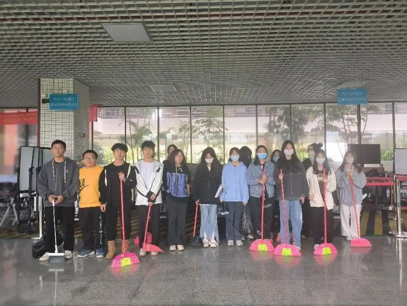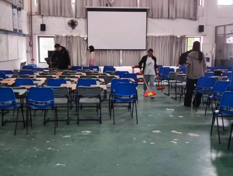 活动现场 本次活动由学生党支部的党员同志带领第40期入党积极分子培训班成员前往明德楼和实训楼进行课室卫生清洁活动。他们手持扫帚、簸箕等工具有条不紊地对明德楼和实训楼等各个教室进行清洁打扫,在清扫过程中,各小组成员配合默契,互帮互助,以饱满精神参与到活动中,不偷懒、不抱怨,同学们认真负责的态度展现了入党积极分子良好的精神风貌。