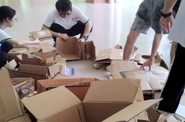志愿者们整理物资现场 为提高活动开展质量,志愿者们于早上十点到达四栋架空层处,听从负责人安排,为上门收集物资做好充足准备。活动开始,各青协成员分别带领志愿者前往各宿舍楼,全体学生本着一颗公益心,纷纷捐赠出闲置物品,以实践行动奉献着爱心与力量。物资收集完毕后,志愿者们统一集合到四栋架空层处,进行物资整理分类。