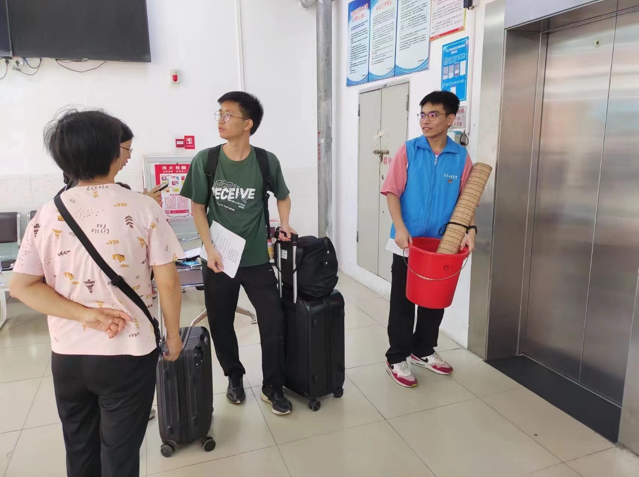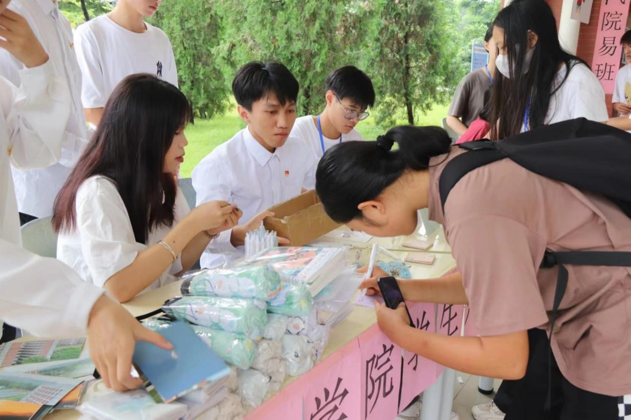 迎新当天,学生党员身穿我院志愿者马甲,帮助新生搬运行李,引导新生到达宿舍楼,为2023级新同学提供热情周到的暖心服务。学生党支部将新生挂钩党员组成一支志愿队伍,协助新生助班迎接并办理新生们的入学相关手续,积极做好服务工作,切实将“我为群众办实事”落实落细。在迎新活动区域,设立了活动,对自己未来的大学生活的期待,对家人的祝福等等,写下自己的心愿和祝福。