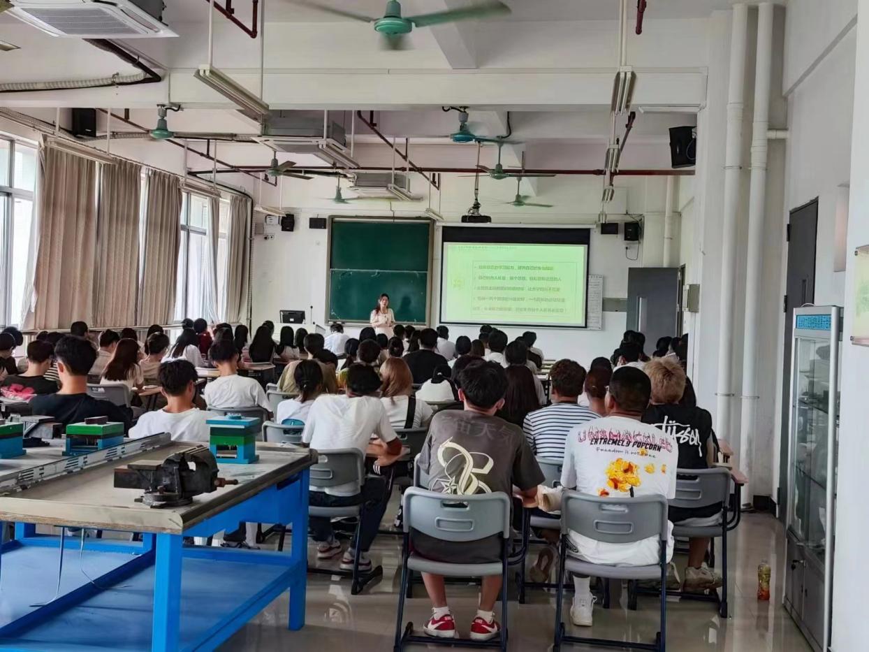 图二:新能源汽车技术专业带头人黄美红为学生做专业介绍
