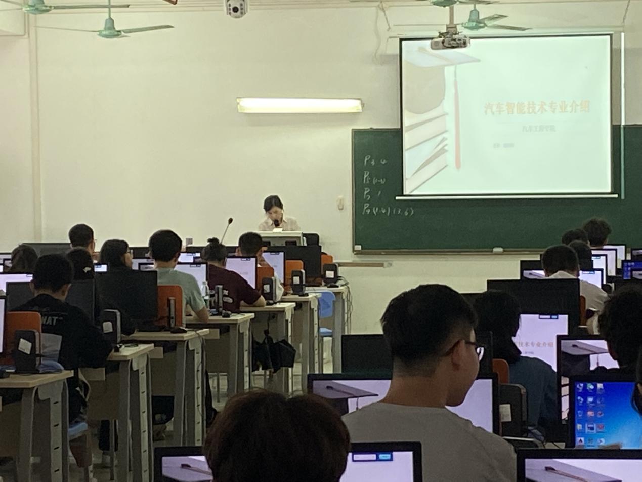 图六:智能网联汽车系主任侯益坤为学生做专业介绍