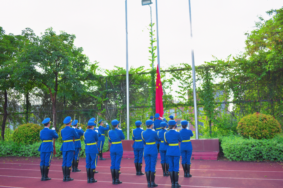 升旗仪式现场 升旗仪式结束后,举行了国旗下的讲话,由学生代表黄培鸿发言。作为新时代青年,我们应该坚持跟党走,听党话。我们要牢记中华民族伟大复兴中国梦,努力实现国家富强、民族振兴、人民幸福的宏伟目标。我们要团结一心,秉持公正、和谐、包容的价值观念,为建设一个更加繁荣、美好的社会贡献自己的力量。在此呼吁全体师生紧握手中的五星红旗,矢志不渝地爱国、奋斗,为实现中华民族伟大复兴而努力奋斗! 让我们相互携手,共同书写祖国发展的辉煌篇章!