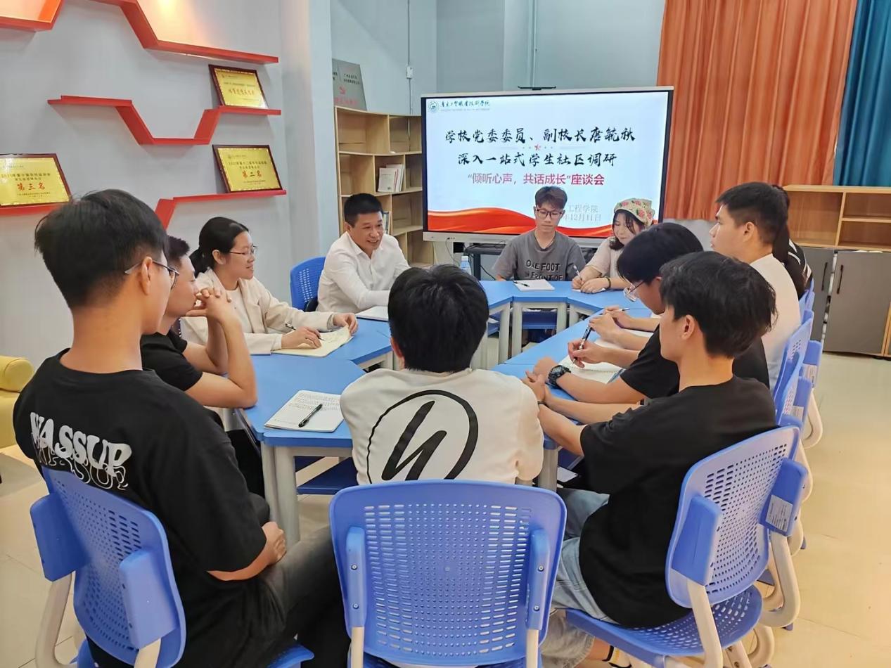 本次座谈会通过学校领导深入学生社区倾听学生心声,了解思想动态,构建了和谐的交流平台,畅通了信息渠道。青少年阶段是人生的“拔节孕穗期”,需要精心引导和栽培,未来,学院和学校将做广大青年学生的“知心人”和“引路人”,进一步推进学生社区形成育人合力,在思想意识、理想信念、学习生活等各方面给予广大学生更多支持与建议,助力学生成长发展。