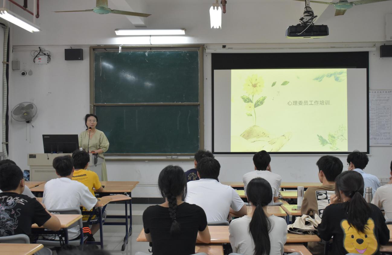 周明娜老师讲授心理健康知识 会上,周老师首先强调了大学生心理健康的重要性以及心理委员在班里的角色,明确职责范围,她希望各心理委员能够及时了解班上同学的心理动态,更好的做好班级心理工作。周老师还强调,作为心理委员,要有敏锐的洞察力,日常工作中要注意保密性,耐心细心地护航大家的健康成长。
